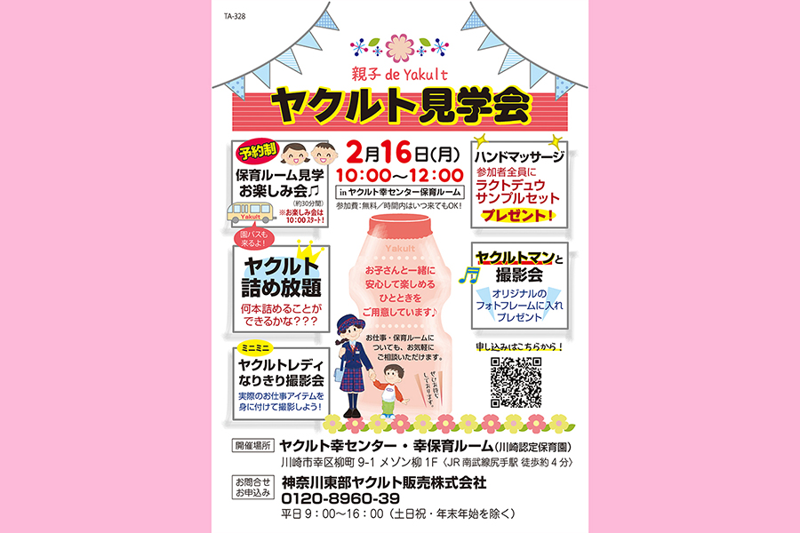 ヤクルト幸センター・幸保育ルームでは2月16日(月)に「親子de Yakult ヤクルト見学会」を開催します。